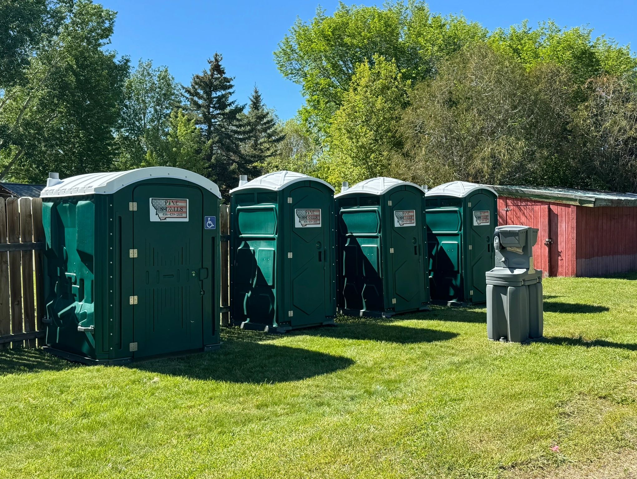 We offer a variety of portable toilet options that are all one color, including the traditional portable toilet, traditional portable toilet with mounted hand sanitizers and ADA handicap accessible units. Check out the gallery below.